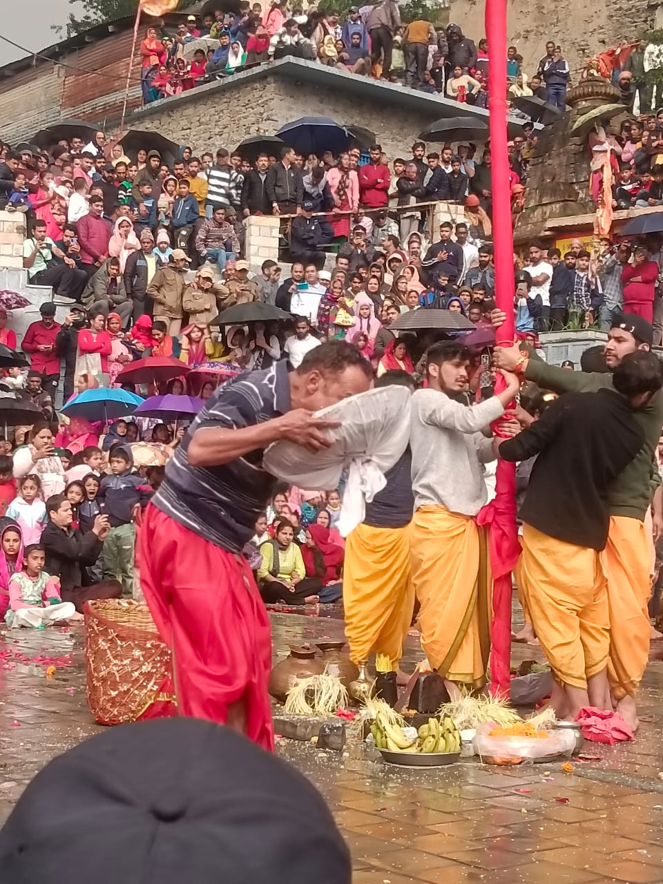 पूजा-अर्चना के बाद तिमुंडिया वीर का आह्वान हुआ भरत बैंजवाड़ी पर पश्वा (अवतारी पुरूष) तिमुंडिया वीर जागृत हुआ उन्होंने पांच किलो से अधिक चावल-गुड़ कई घड़े पानी का भोग गृहण किया यह देखकर सभी श्रद्धालु अचंभित रह गये। पश्वा ने श्री बदरीविशाल यात्रा के निविघ्न शुरू होने का भी आशीर्वाद दिया। इस अवसर पर सैकड़ों की संख्या में श्रद्धालु दर्शन को पहुंचे थे।
