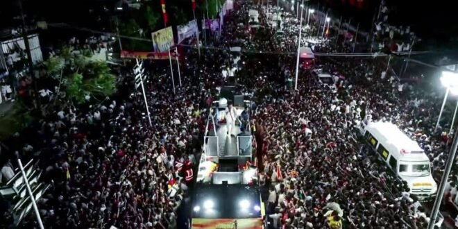चेन्नई : तमिलनाडु के करुर जिले में शनिवार को तमिलगा वेत्री काजहाम (टीवीके) की चुनावी रैली में हुई भगदड़ ने पूरे राज्य को सदमे में डाल दिया है। इस हादसे में 39 लोगों की मौत हो गई, जिनमें 8 बच्चे और 16 महिलाएं शामिल हैं। 95 घायलों को अस्पताल में भर्ती कराया गया है। केंद्रीय गृह मंत्रालय ने राज्य सरकार से विस्तृत रिपोर्ट मांगी है, जबकि मुख्यमंत्री एमके स्टालिन ने हाईकोर्ट के सेवानिवृत्त जज की निगरानी में जांच आयोग गठित करने का ऐलान किया है। टीवीके प्रमुख विजय ने पीड़ित परिवारों को 20 लाख रुपये की सहायता की घोषणा की है।