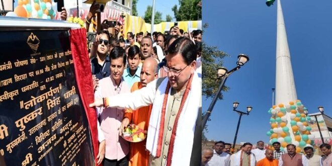 मुख्यमंत्री पुष्कर सिंह धामी ने कंजाबाग तिराहा खटीमा में मुख्यमंत्री घोषणा के अंतर्गत कार्यदायी संस्था लघु सिंचाई विभाग द्वारा 47.42 लाख की लागत से स्थापित किए गए 215 फीट ऊँचे राष्ट्रीय ध्वज का विधिवत पूजा अर्चना कर फीता काटकर व ध्वजारोहण कर लोकार्पण किया।
