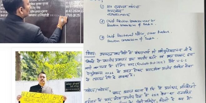 बरेली (उत्तर प्रदेश): बरेली के सिटी मजिस्ट्रेट अलंकार अग्निहोत्री ने गणतंत्र दिवस के अवसर पर अपने पद से इस्तीफा दे दिया है। उन्होंने UGC के नए नियमों 2026 और प्रयागराज में माघ मेले के दौरान ज्योतिर्मठ के शंकराचार्य अविमुक्तेश्वरानंद के ब्राह्मण बटुक शिष्यों की कथित मारपीट को अपना इस्तीफा देने का मुख्य कारण बताया है।