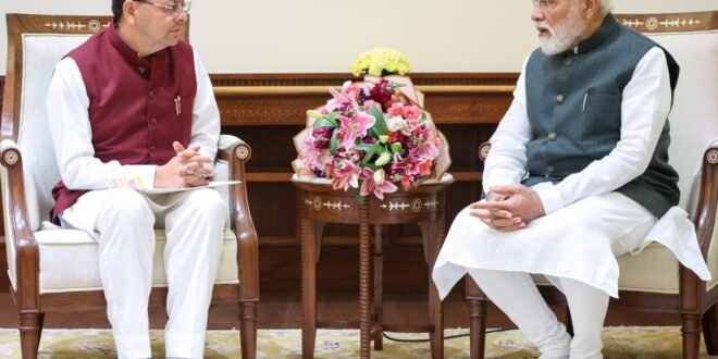 नई दिल्ली/देहरादून। उत्तराखंड के मुख्यमंत्री पुष्कर सिंह धामी ने शुक्रवार को नई दिल्ली में प्रधानमंत्री नरेंद्र मोदी से शिष्टाचार भेंट की। इस दौरान मुख्यमंत्री ने राज्य के विकास में केंद्र सरकार से मिल रहे सहयोग और मार्गदर्शन के लिए प्रधानमंत्री का आभार व्यक्त किया और उन्हें उत्तराखंड आने का औपचारिक निमंत्रण दिया।
