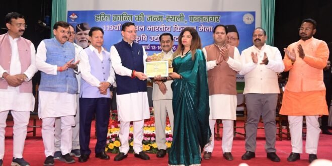 पंतनगर (उत्तराखंड): गोविंद बल्लभ पंत कृषि एवं प्रौद्योगिकी विश्वविद्यालय, पंतनगर ने डॉ. पूजा गौड़ को उनके कृषि क्षेत्र में नवोन्मेषी कार्यों के लिए ‘प्रगतिशील कृषक सम्मान’ से सम्मानित किया है। यह सम्मान विशेष रूप से चकराता क्षेत्र के किसानों और महिलाओं को वैज्ञानिक खेती अपनाने तथा नए कृषि-व्यवसायिक अवसरों से जोड़ने के उनके निरंतर प्रयासों के लिए प्रदान किया गया है।