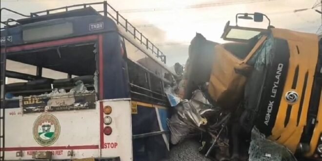 हैदराबाद : तेलंगाना के रंगारेड्डी जिले के चेवेला मंडल में सोमवार सुबह एक दर्दनाक सड़क हादसे ने पूरे राज्य को झकझोर दिया। खनापुर गेट के पास मिरजगुडा-खानापुर रोड पर टीजीएसआरटीसी की एक यात्री बस और बजरी से लदे टिपर ट्रक की आमने-सामने टक्कर हो गई, जिसमें 20 लोगों की मौत हो गई। मरने वालों में 10 महिलाएं, 9 पुरुष और एक 3 महीने की मासूम बच्ची शामिल हैं। लगभग 20 अन्य घायल हैं, जिनमें से 3 की हालत गंभीर बनी हुई है। हादसा सुबह करीब 7:30 बजे हुआ, जब विकाराबाद डिपो की बस हैदराबाद की ओर जा रही थी और टिपर ट्रक गलत दिशा से तेज रफ्तार में आ रहा था।