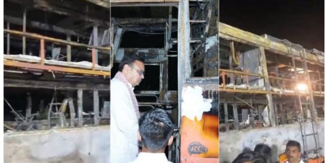 जैसलमेर : राजस्थान के जैसलमेर जिले में मंगलवार दोपहर एक दिल दहला देने वाले सड़क हादसे ने पूरे राज्य को स्तब्ध कर दिया। जैसलमेर-जोधपुर हाईवे पर थैयत गांव के पास दोपहर करीब 3:30 बजे एक एसी स्लीपर बस में अचानक भीषण आग लग गई, जिसमें एक ही परिवार समेत 20 यात्रियों की जिंदा जलने से दर्दनाक मौत हो गई। घटना के समय बस में लगभग 57 यात्री सवार थे, जिनमें से 16 गंभीर रूप से झुलसकर जोधपुर के अस्पतालों में भर्ती हैं। हादसे की भयावहता का अंदाजा इस बात से लगाया जा सकता है कि कई शव बस की चपेट में चिपक गए, जबकि कुछ इतने जल गए कि उनकी पहचान भी मुश्किल हो गई। मृतकों के 19 शवों को पोस्टमॉर्टम के लिए जोधपुर भेजा गया है, जहां कलेक्टर प्रताप सिंह के निर्देश पर परिजनों के डीएनए सैंपल लिए जा रहे हैं।