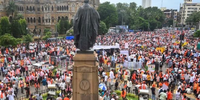 मराठा समुदाय सरकारी नौकरियों और शैक्षणिक संस्थानों में 10% ओबीसी आरक्षण की अपनी पुरानी माँग को लेकर आंदोलन कर रहा है। मनोज जरांगे पाटिल की भूख हड़ताल के बाद यह आंदोलन और भी तेज हो गया है, जिससे मुंबई में यातायात व्यवस्था चरमरा गई है और महाराष्ट्र की महायुति सरकार पर दबाव बढ़ गया है।