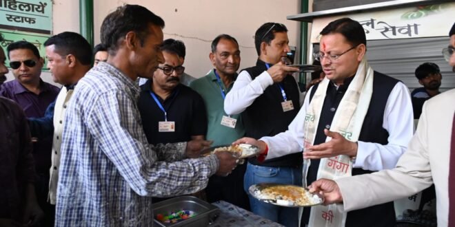उत्तराखंड के मुख्यमंत्री पुष्कर सिंह धामी ने हल्द्वानी में ‘थाल सेवा’ में थालसेवक बनकर दी सेवा