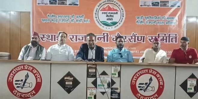 देहरादून : गैरसैंण को स्थायी राजधानी बनाने के लिए कार्यकारिणी समिति का गठन राष्ट्रीय संयोजक विनोद प्रसाद रतूड़ी (IASIAS, पूर्व सचिव, उत्तराखंड सरकार) की सलाह पर किया गया। यह समिति 12 अक्टूबर को देहरादून में आयोजित धरना प्रदर्शन का संचालन करेगी।