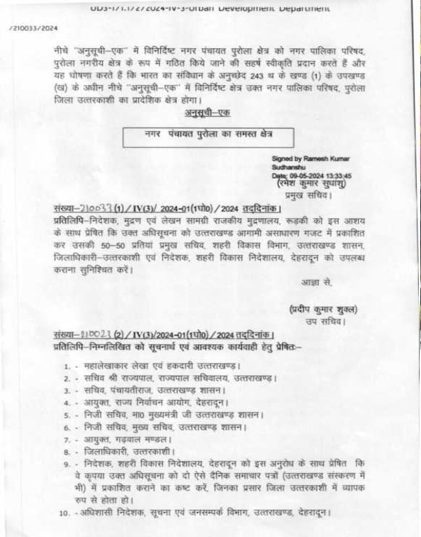 उत्तराखंड: पुरोला और इस नगर पंचायत को नगर पालिका बनाने की अधिसूचना जारी