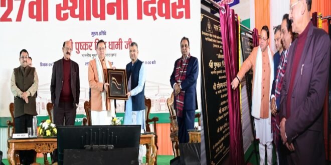 देहरादून। मुख्यमंत्री पुष्कर सिंह धामी ने मंगलवार को देहरादून नगर निगम के 27वें स्थापना दिवस समारोह में मुख्य अतिथि के रूप में शिरकत की और शहर को बड़ी सौगात देते हुए कुल 46 करोड़ रुपये से अधिक की विकास परियोजनाओं का शिलान्यास एवं लोकार्पण किया।