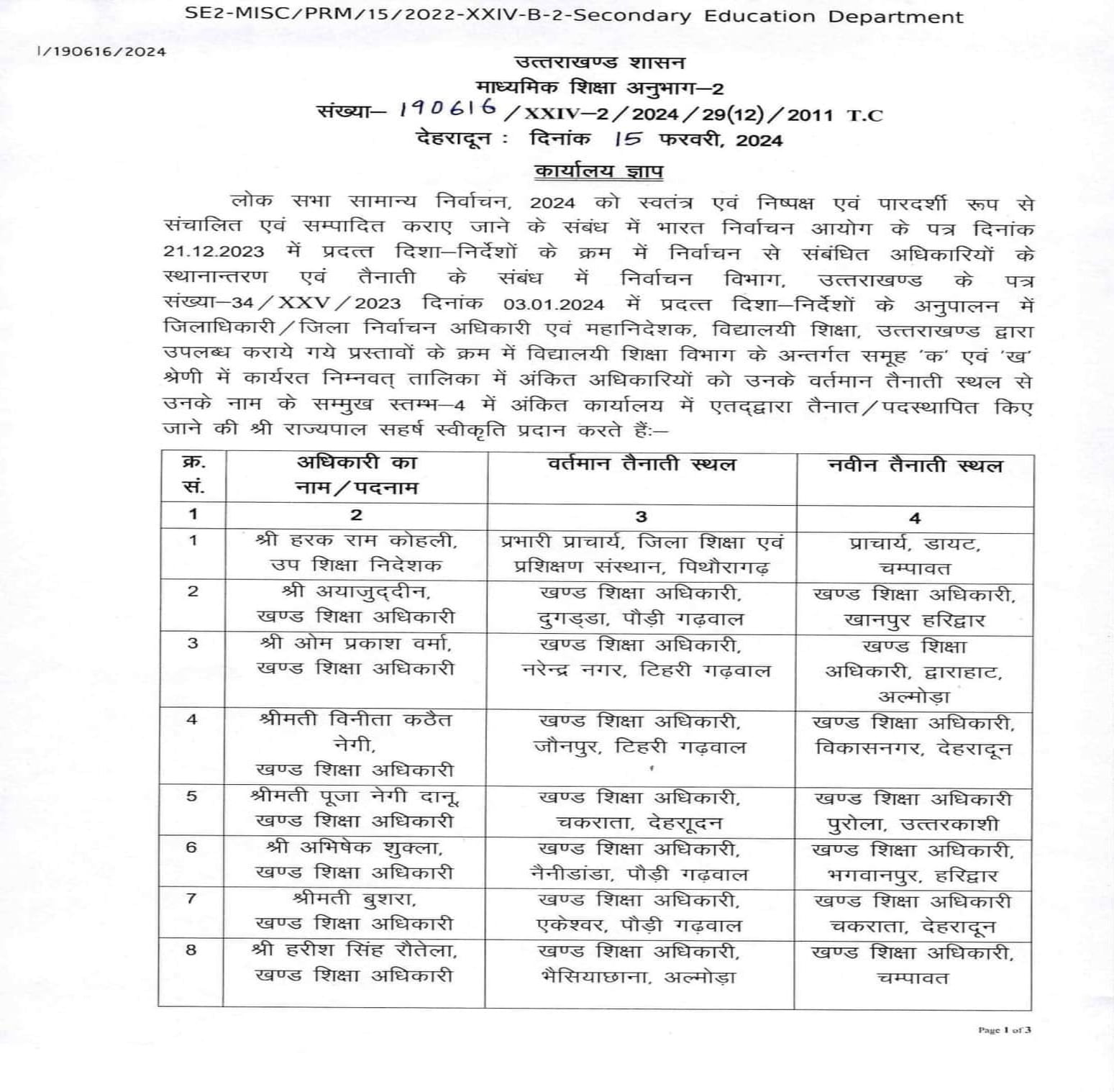 देहरादून : शिक्षा विभाग में बड़े स्तर पर अधिकारियों के ट्रांसफर हुए हैं। एक उप शिक्षा निदेशक के साथ ही विभिन्न जिलों के खंड शिक्षा अधिकारियों को बदला गया है। आप अपने खंड शिक्षा अधिकारियों के नाम नीचे दी गई लिस्ट में देख सकते हैं।