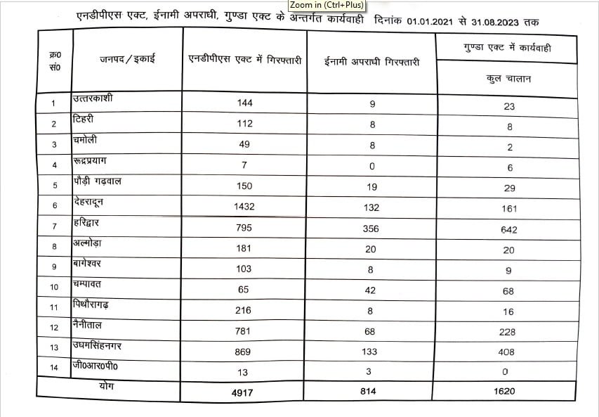 देहरादून: उत्तराखंड पुलिस ड्रग्स फ्री देवभूमि अभियान चला रही है। 2021 से अगस्त 2023 तक पुलिस NDPS एक्ट के तहत 4917 अपराधियों को गिरफ्तार कर चुकी है। 814 ईनामी बदमाश को भी पुलिस ने पकड़ा है। साथ ही गुंडा एक्ट में 1620 बदमाशों को चालान भी किया है। लेकिन, जिस तरह से प्रदेश में हर दिन ड्रग्स के मामले सामने आ रहे हैं। उससे यह कार्रवाई छोटी पड़ती नजर आ रही है।