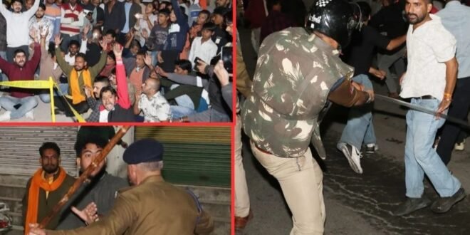 उजाला नगर में ‘जय श्री राम’ के नारे लगाते हुए भीड़ ने हंगामा शुरू कर दिया, जो धीरे-धीरे बढ़ता चला गया। आसपास की दुकानों पर पत्थर फेंके गए और पुलिस-प्रशासन के खिलाफ नारेबाजी के साथ पुलिसकर्मियों से धक्कामुक्की हुई। स्थिति बेकाबू होती देख पुलिस ने लाठीचार्ज किया। इधर, मुस्लिम पक्ष के लोग भी एकत्र होने लगे, जिससे माहौल और बिगड़ गया।