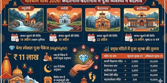 उत्तराखंड में आगामी चारधाम यात्रा 2026 को लेकर तैयारियां तेज हो गई हैं। इस बार श्रद्धालुओं की सुविधा के लिए केदारनाथ धाम और बदरीनाथ धाम में पूजा व्यवस्थाओं को और सरल बनाया गया है। साथ ही पहली बार करीब 11 लाख रुपये का “मेगा स्पेशल पूजा” पैकेज भी तैयार किया जा रहा है।
