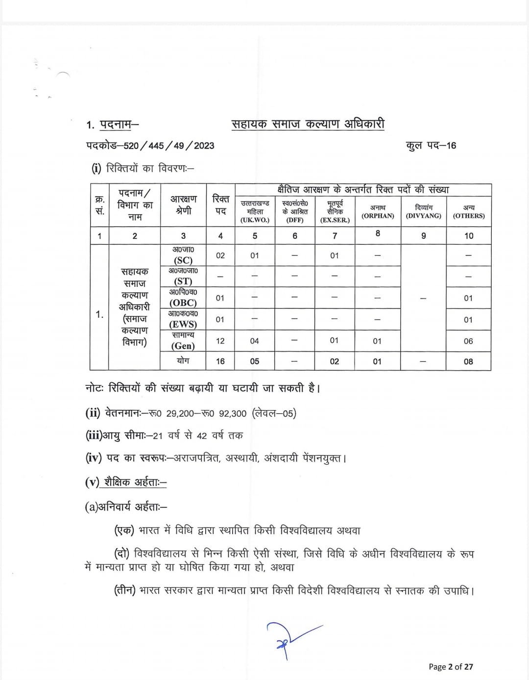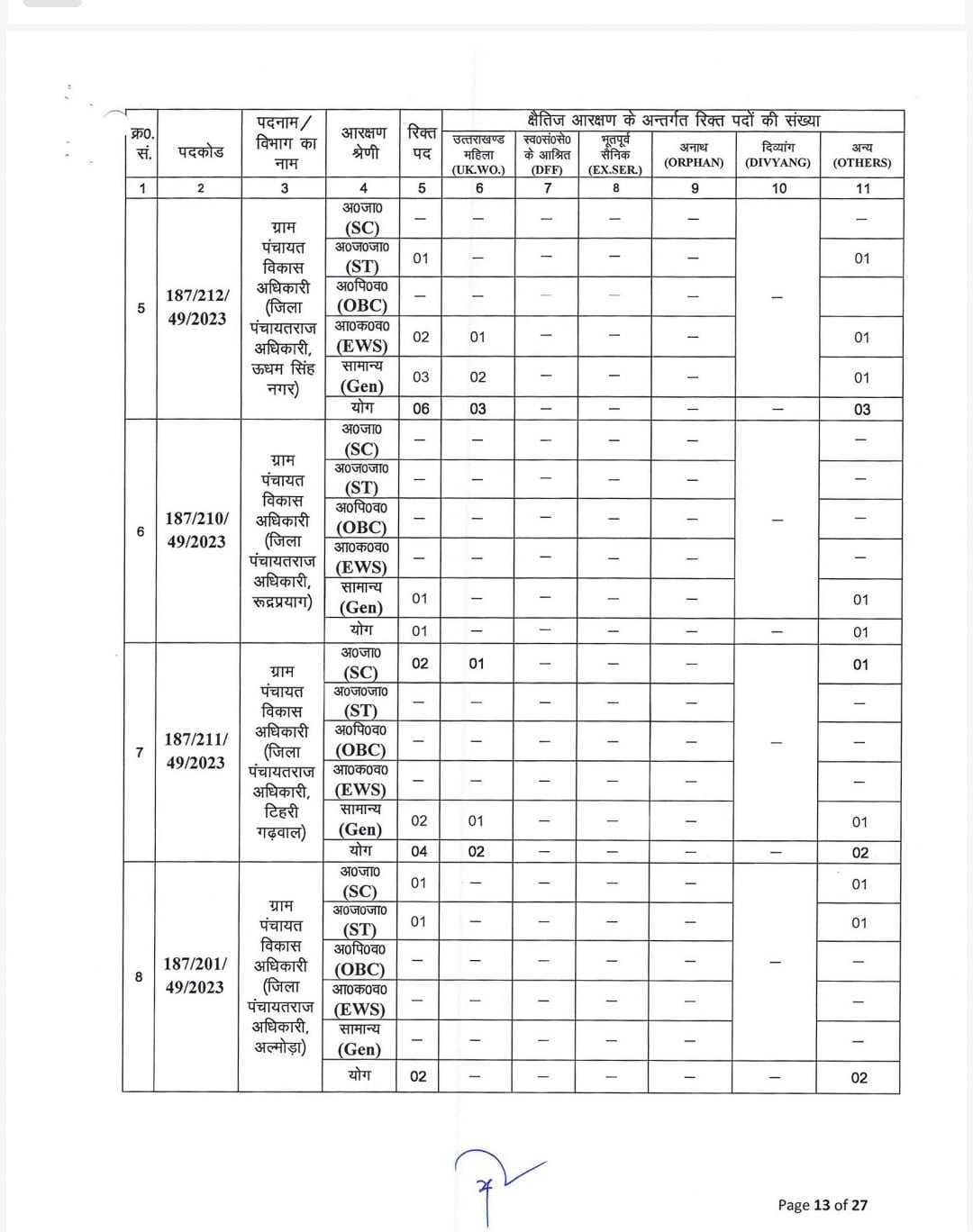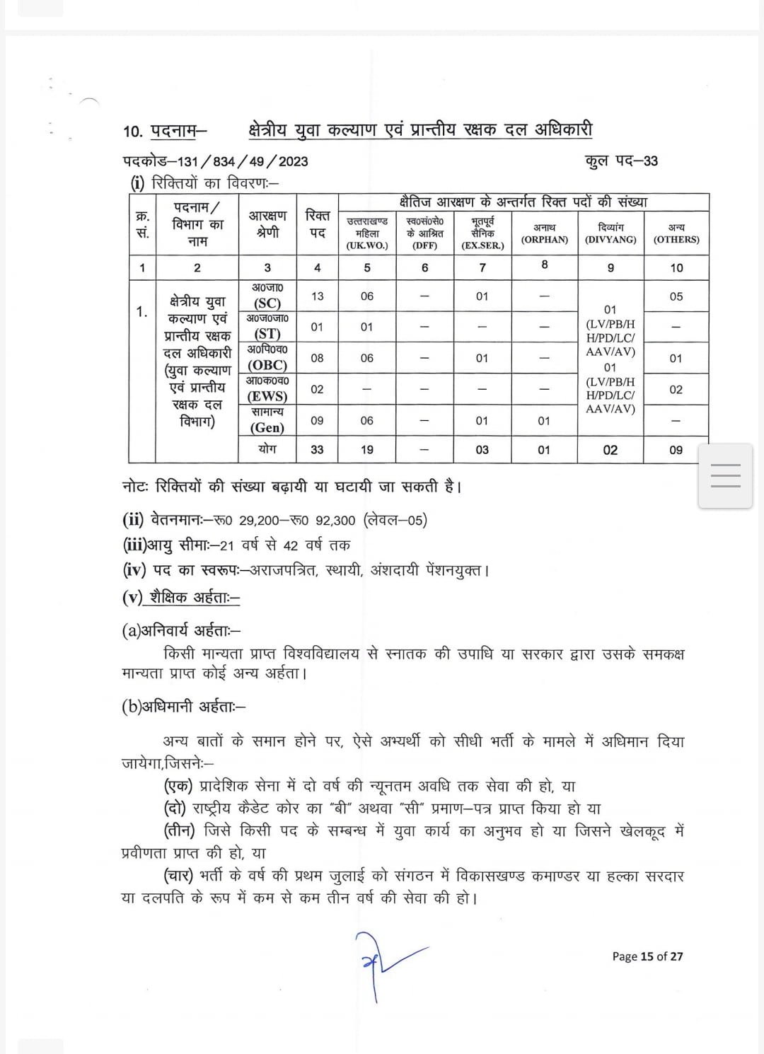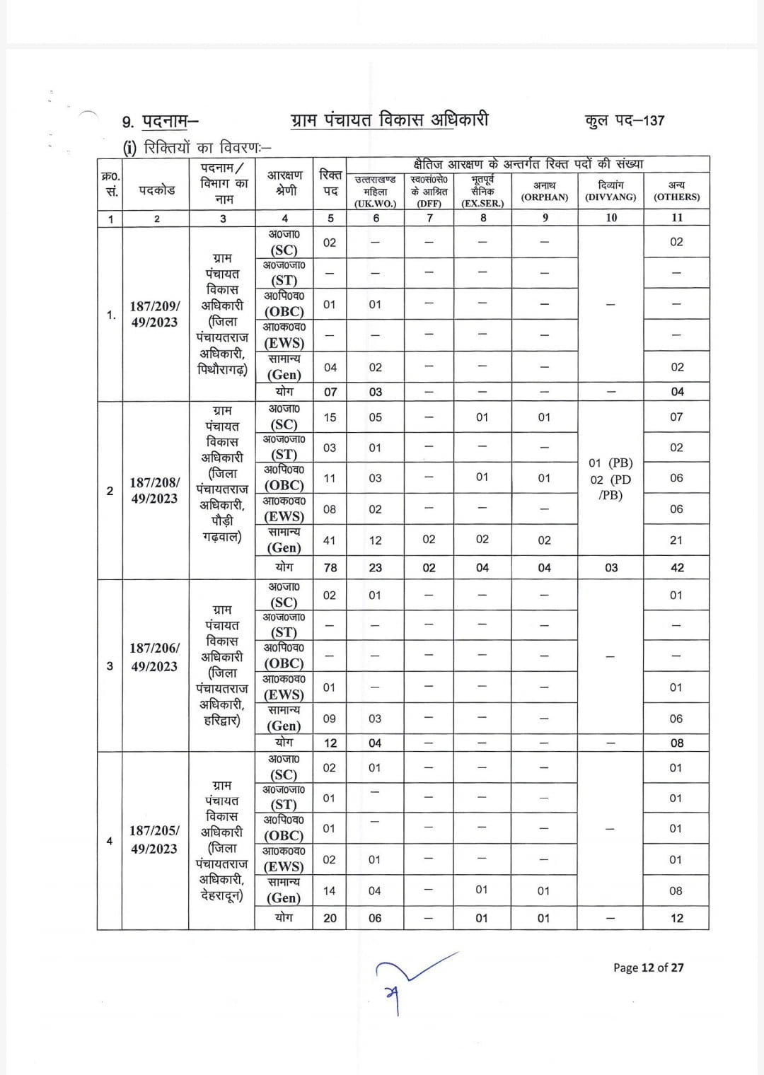 इसके अलावा गोविन्द बल्लभ पंत कृषि एवं प्रौद्योगिक विश्वविद्यालय के अंतर्गत फोरमैन परिसम्पत्ति के 01 रिक्त पद, उत्तराखण्ड के विभिन्न जनपदों के अंतर्गत ग्राम पंचायत विकास अधिकारी के 137 रिक्त पदों, युवा कल्याण एवं प्रान्तीय रक्षक दल विभाग में क्षेत्रीय युवा कल्याण एवं प्रान्तीय रक्षक दल अधिकारी के 33 रिक्त पदों अर्थात कुल 229 रिक्त पदों पर सीधी भर्ती द्वारा चयन हेतु ऑनलाइन आवेदन पत्र आमन्त्रित किए जाते हैं। इच्छुक अभ्यर्थी आयोग की वेबसाइट www.sssc.uk.gov.in पर दिनांक 23.11.2023 तक ऑनलाइन आवेदन कर सकते हैं।