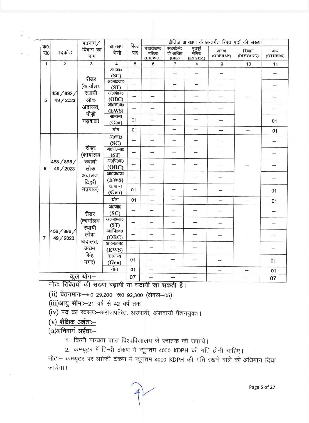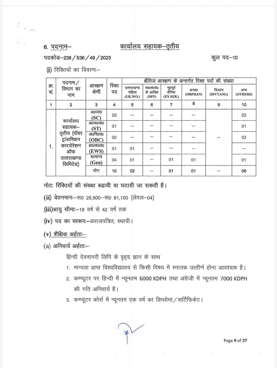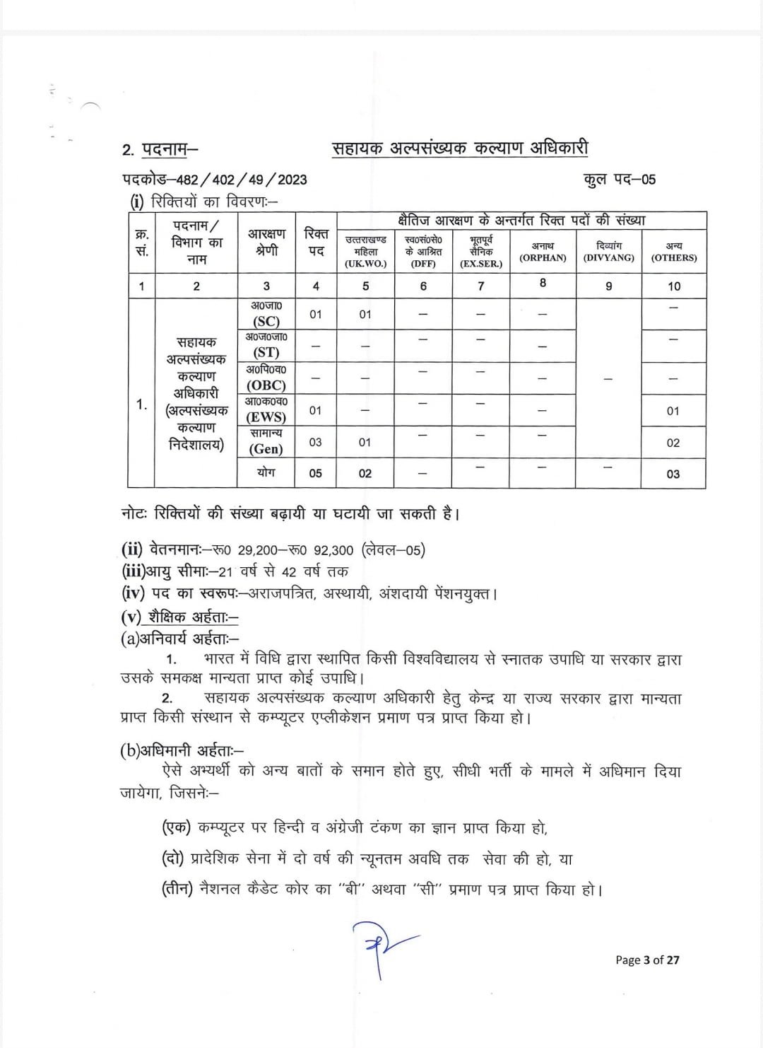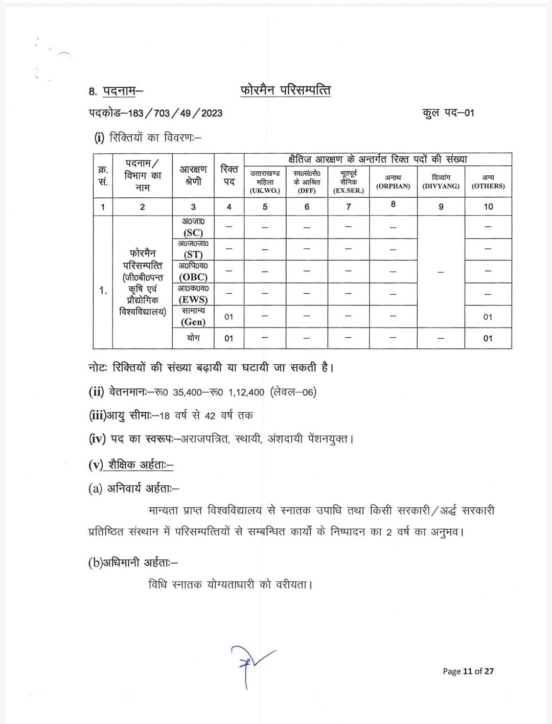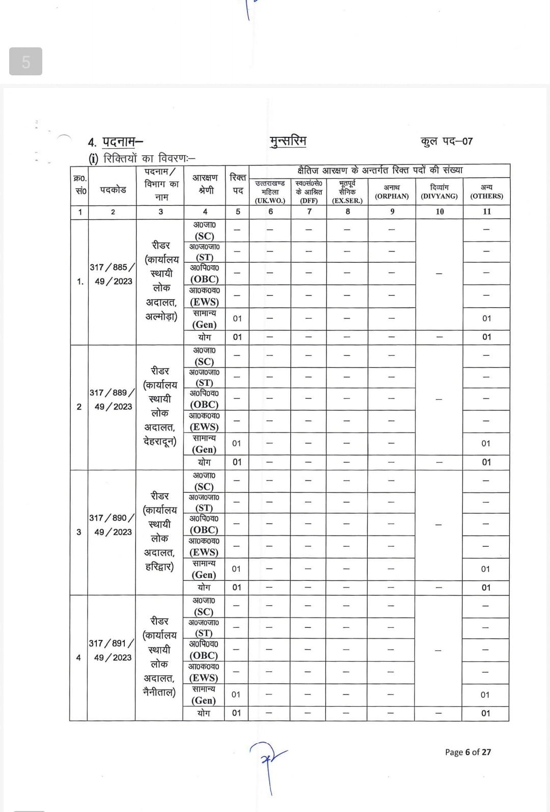 इसके अलावा गोविन्द बल्लभ पंत कृषि एवं प्रौद्योगिक विश्वविद्यालय के अंतर्गत फोरमैन परिसम्पत्ति के 01 रिक्त पद, उत्तराखण्ड के विभिन्न जनपदों के अंतर्गत ग्राम पंचायत विकास अधिकारी के 137 रिक्त पदों, युवा कल्याण एवं प्रान्तीय रक्षक दल विभाग में क्षेत्रीय युवा कल्याण एवं प्रान्तीय रक्षक दल अधिकारी के 33 रिक्त पदों अर्थात कुल 229 रिक्त पदों पर सीधी भर्ती द्वारा चयन हेतु ऑनलाइन आवेदन पत्र आमन्त्रित किए जाते हैं। इच्छुक अभ्यर्थी आयोग की वेबसाइट www.sssc.uk.gov.in पर दिनांक 23.11.2023 तक ऑनलाइन आवेदन कर सकते हैं।