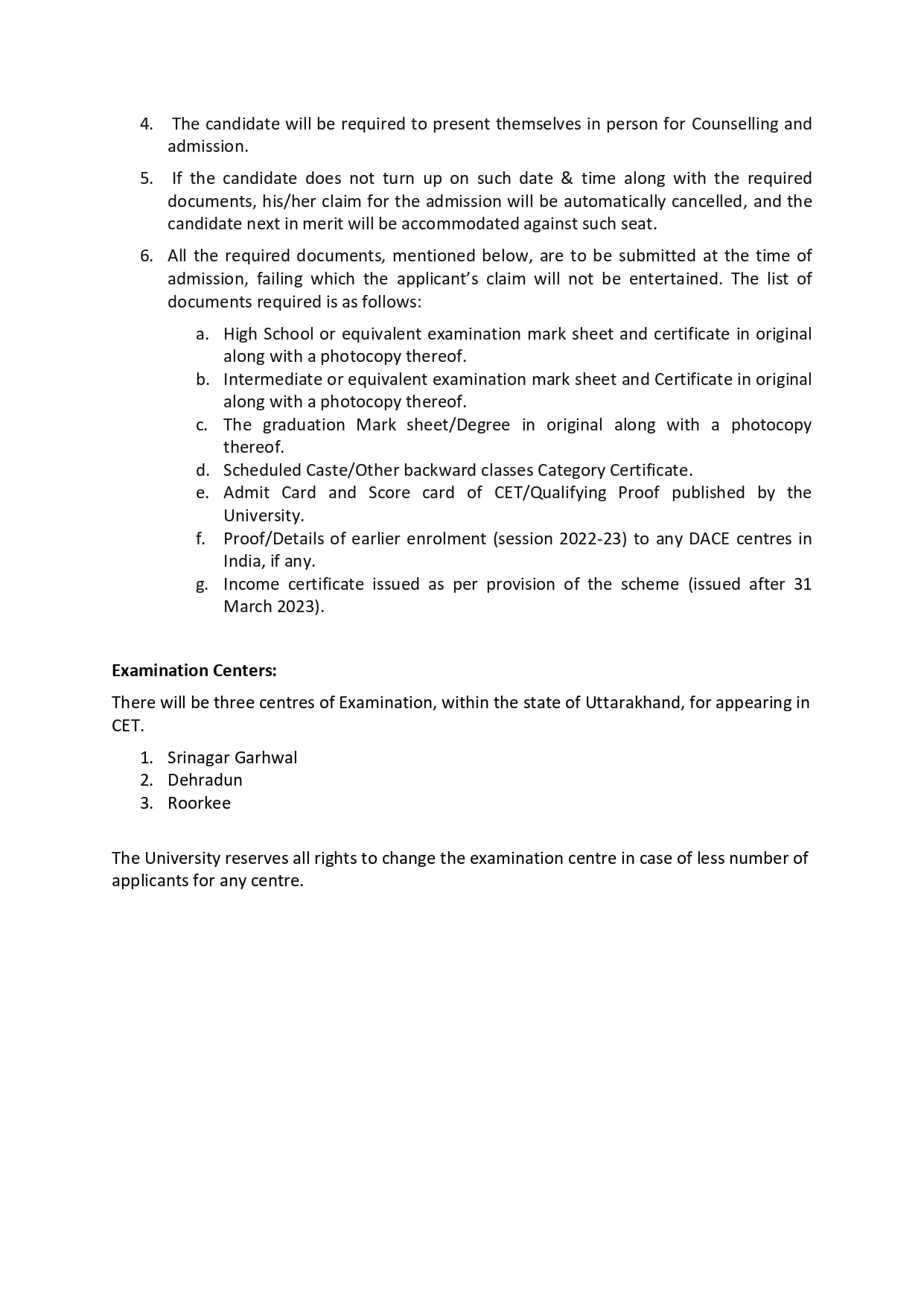 अगर कोई छात्र लगातार चार दिन तक बिना वाजिब कारण बताए क्लासेज से गैरहाजिर हो जाएगा तो उसे योजना से बाहर कर दिया जाएगा। हर छात्र की आधार बेस्ड बायोमीट्रिक हाजिरी लगेगी, जिसकी रिपोर्ट हर महीने गढ़वाल विवि की ओर से मंत्रालय को भेजी जाएगी। कोचिंग कोर्स की अवधि एक साल होगी और SSC के कोचिंग कोर्स की अवधि छह से नौ महीने की होगी। CET परीक्षा के लिए श्रीनगर, देहरादून और रुड़की में केंद्र बनाए जाएंगे।