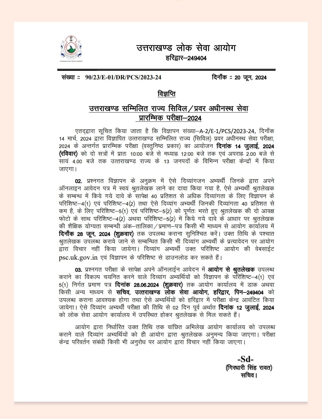 उत्तराखंड लोक सेवा आयोग (UKPSC) की ओर से उत्तराखंड सम्मिलित राज्य सिविल/प्रवर अधीनस्थ सेवा प्रारंभिक (PCS) परीक्षा-2024 के तहत प्रारंभिक परीक्षा (वस्तुनिष्ठ प्रकार) 14 जुलाई को होगी।