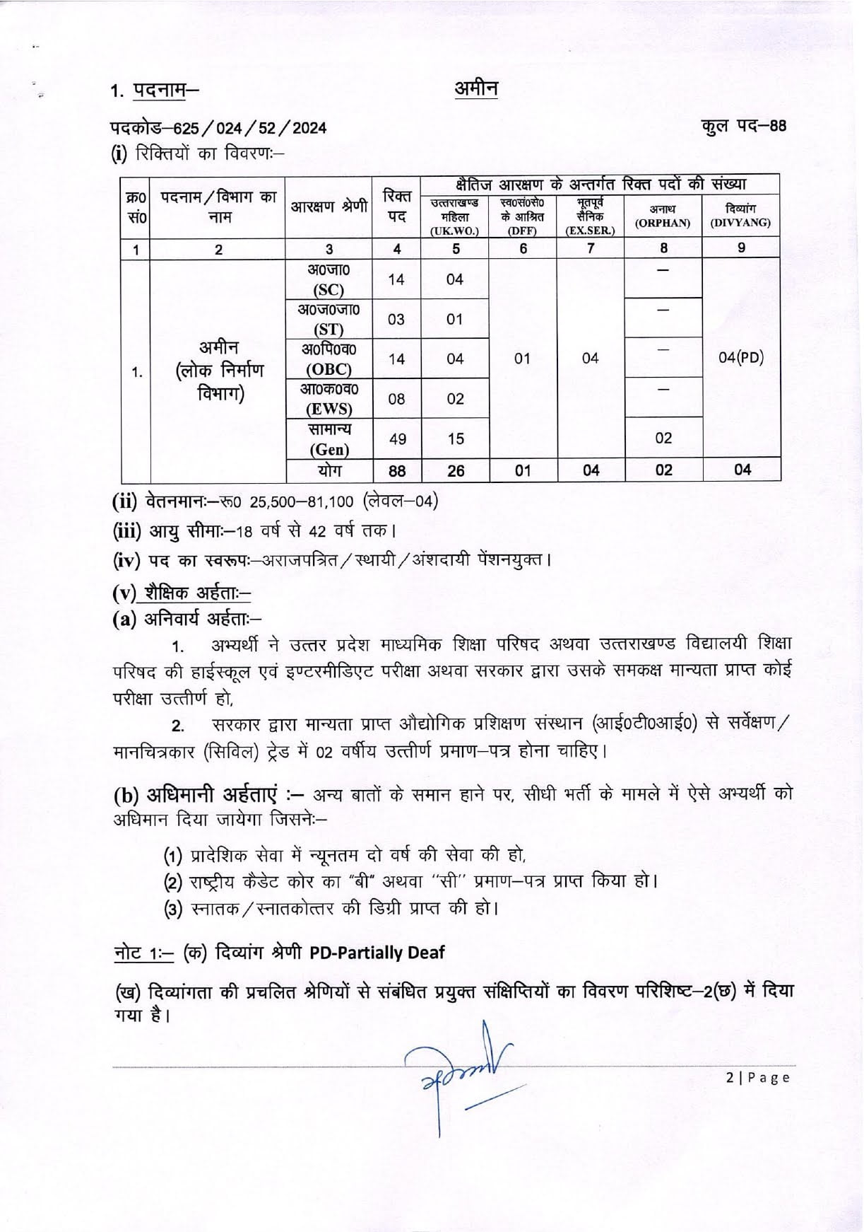 देहरादून : उत्तराखण्ड अधीनस्थ सेवा चयन आयोग (UKSSSC) ने समूह ‘ग’ के अन्तर्गत लोक निर्माण विभाग में अमीन के 88 रिक्त पदों पर सीधी भर्ती के जरिए चयन के लिए ऑनलाइन आवेदन पत्र आमन्त्रित किए जाते हैं। इच्छुक अभ्यर्थी आयोग की वेबसाइट www.sssc.uk.gov.in पर दिनांक 07.02.2024 तक ऑनलाइन आवेदन कर सकते हैं।