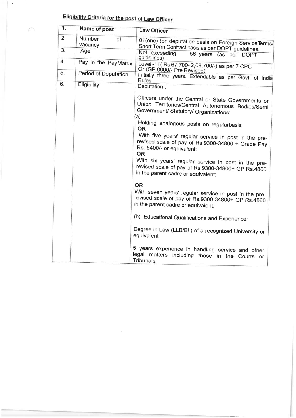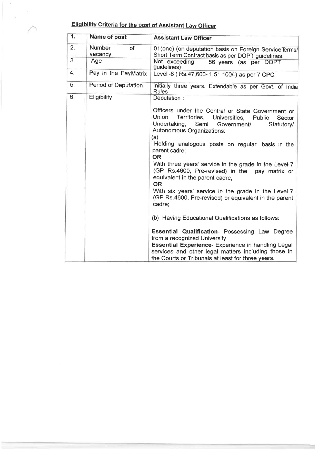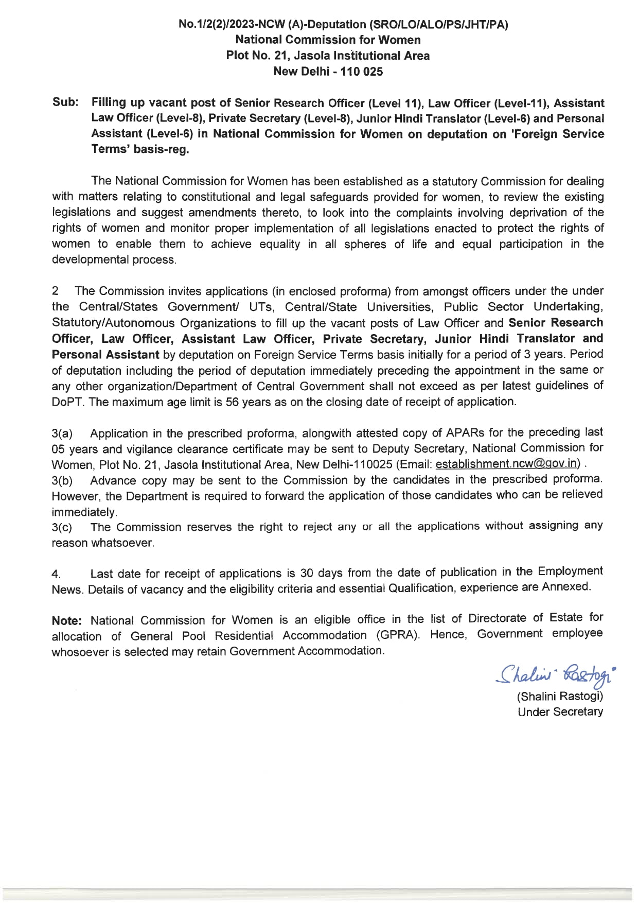 • पद का नाम: वरिष्ठ अनुसंधान अधिकारी, विधि अधिकारी, सहायक विधि अधिकारी, निजी सचिव, कनिष्ठ हिंदी अनुवादक, व्यक्तिगत सहायक।