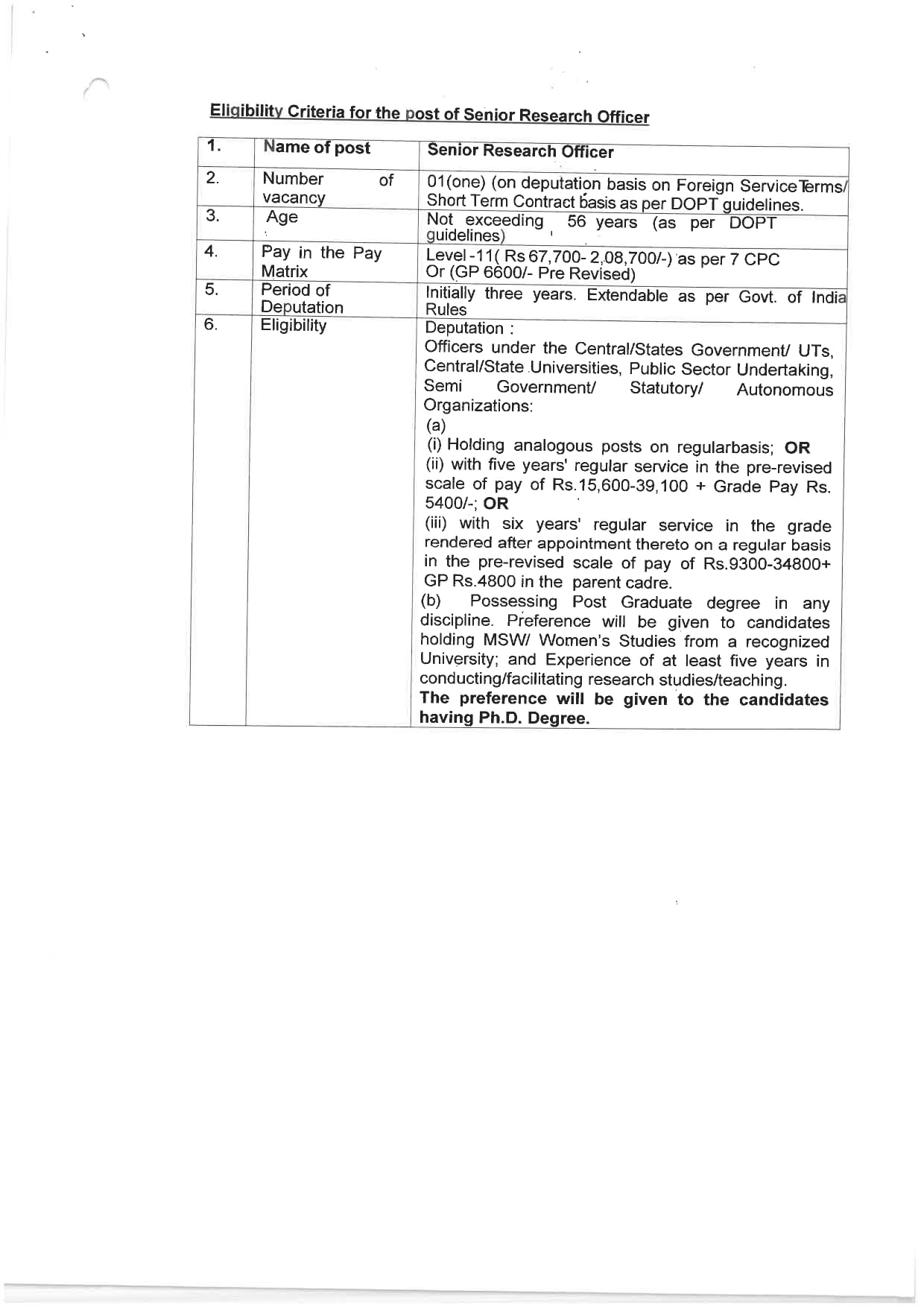 • वरिष्ठ अनुसंधान अधिकारी