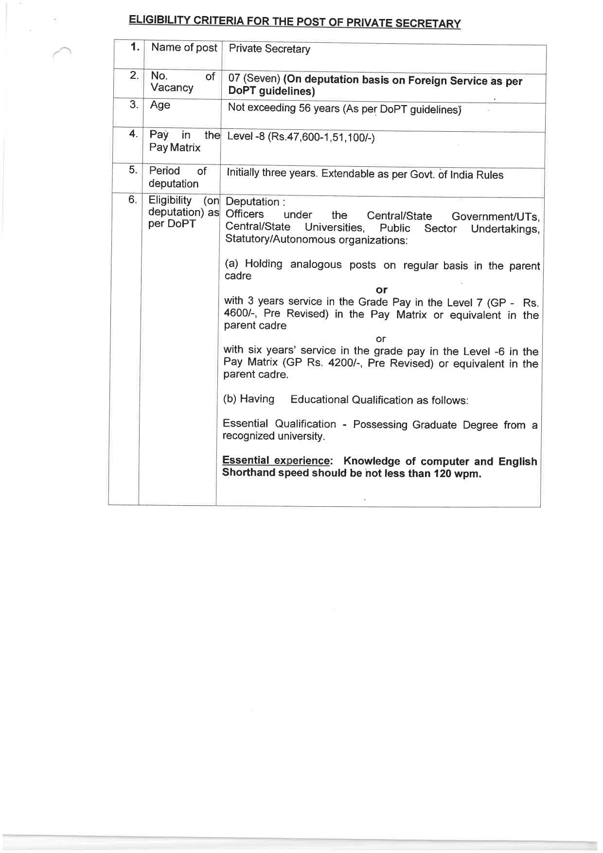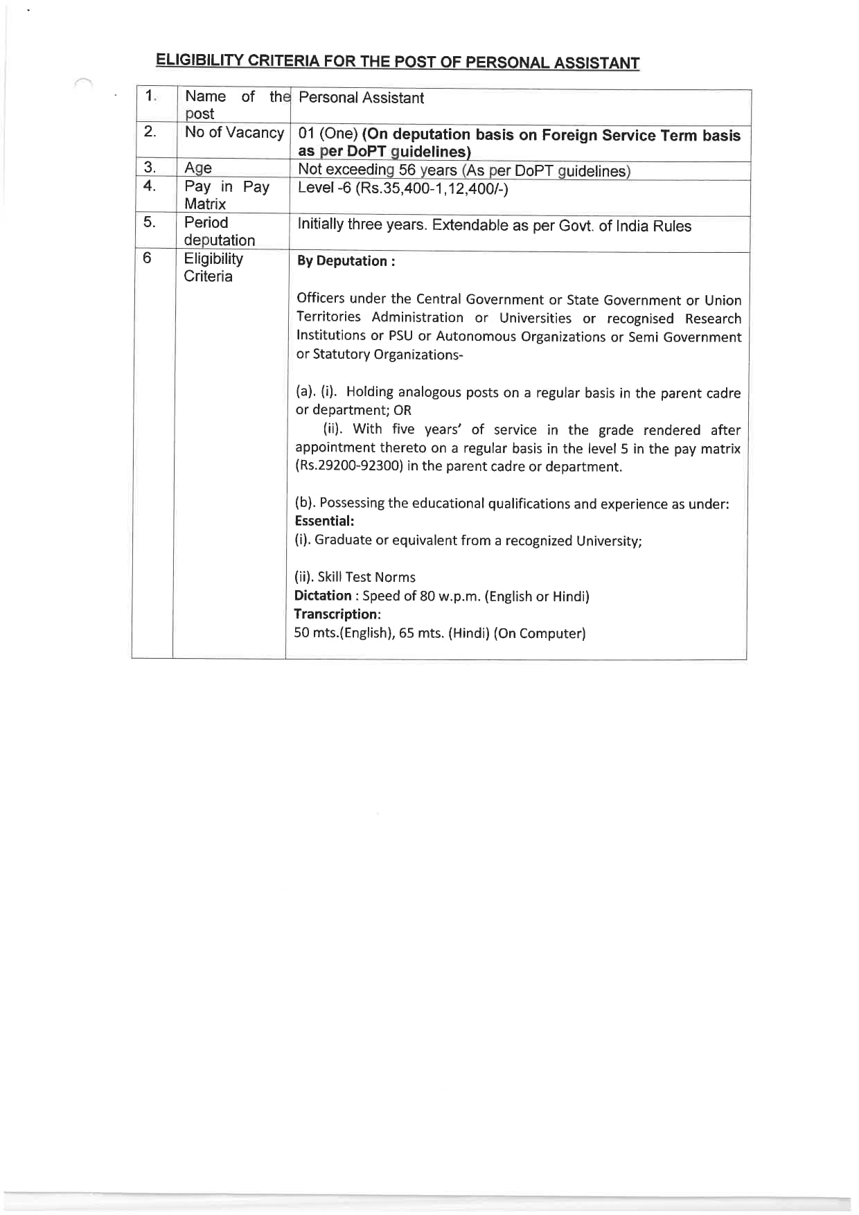 • भर्ती प्रकार: प्रतिनियुक्ति.