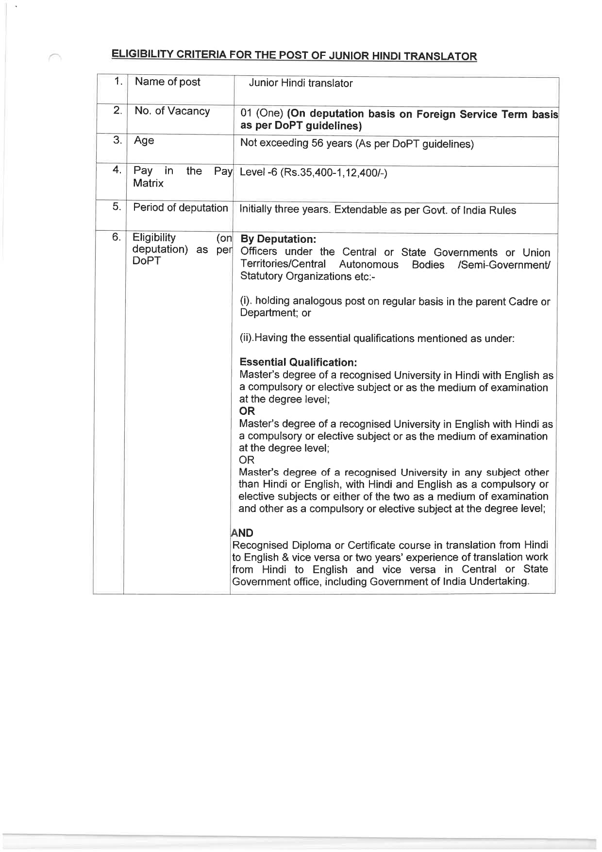 • जूनियर हिंदी अनुवादक