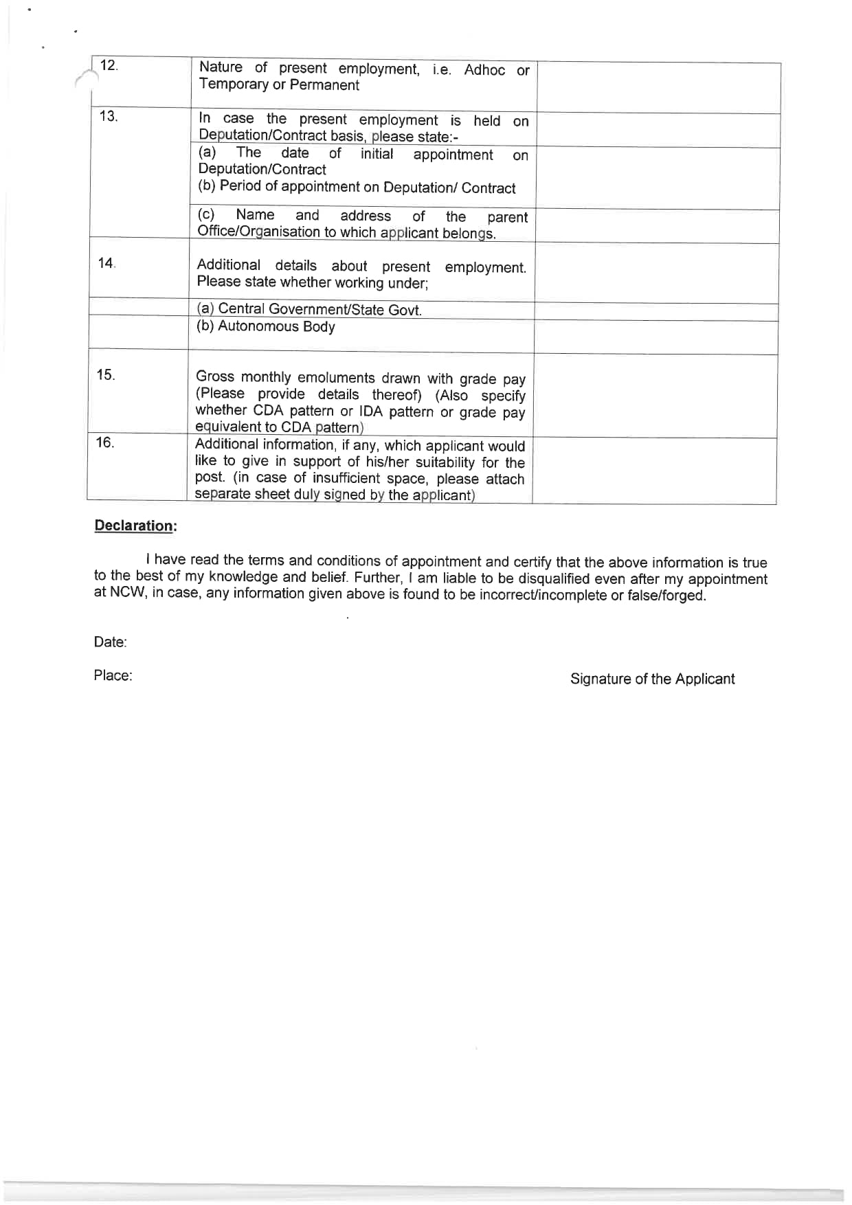 उम्मीदवार को आवेदन पत्र भरकर संबंधित दस्तावेजों के साथ उप सचिव राष्ट्रीय महिला आयोग, प्लॉट नंबर 21 जसोला इंस्टीट्यूशनल एरिया नई दिल्ली-110025 को भेजना होगा।