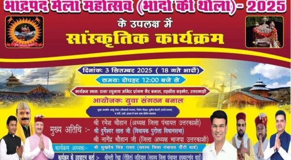 यह सालाना भाद्रपद मेला महोत्सव (भादों कु थौलु) दोपहर 12 बजे से शुरू होगा। इस दौरान, उत्तराखंड के लोक गायक अज्जु तोमर, विनोद चौहान और सुनील बेसारी समेत रवांई, जौनपुर और जौनसार के लोक कलाकार अपनी प्रस्तुतियां देंगे।