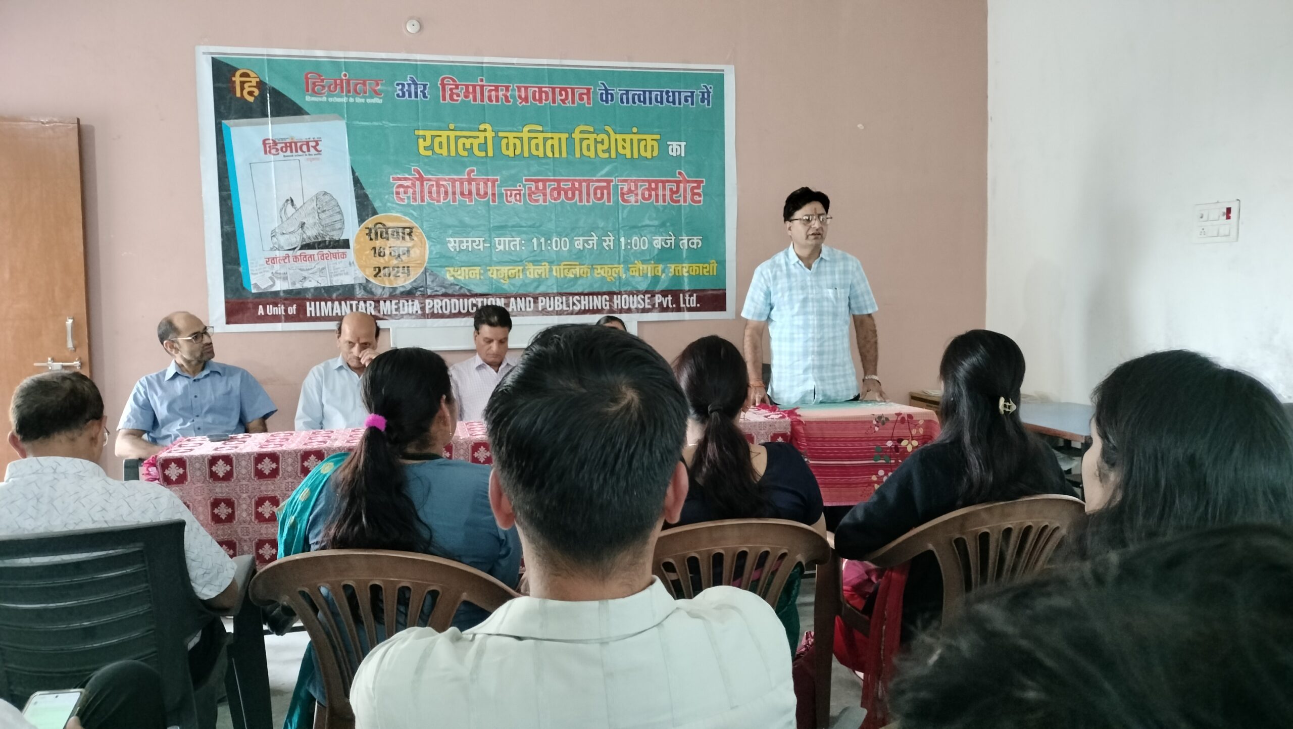 नौगांव: यमुना वैली पब्लिक स्कूल में हिमांतर प्रकाशन से प्रकाशित रवांल्टी कविता विशेषांक का विमोचन और सम्मान समारोह आयोजित किया गया। देश के ख्यातिलब्ध साहित्यकार महावीर रवांल्टा को वाल्मीकीय रामायण का रवांल्टी में संक्षिप्त अनुवाद करने के लिए सम्मानित किया गया। इस दौरान गोष्ठी का भी आयोजन किया गया।