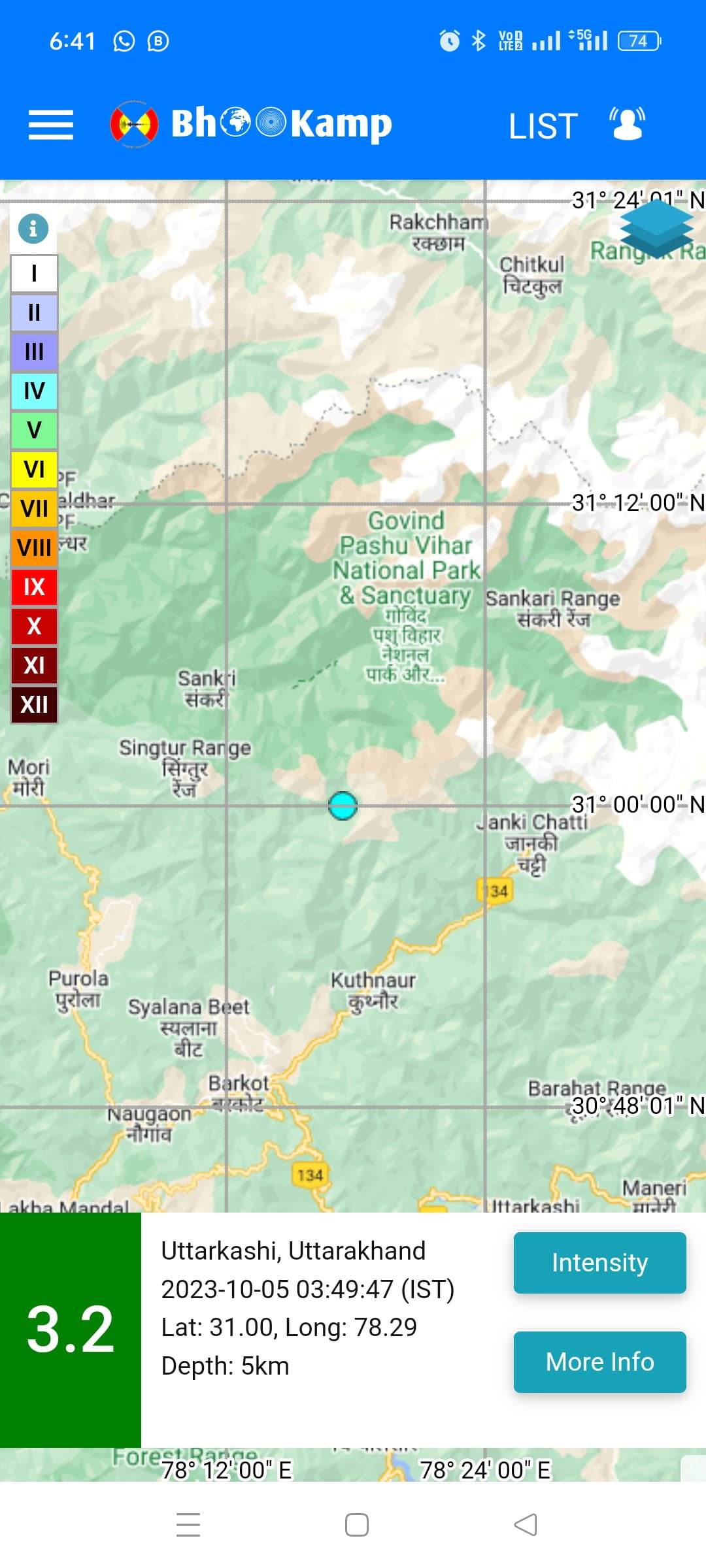 आज सुबह 3 बजकर 49 मिनट पर भूकंप के झटके महसूस किए गए, जिसकी तीव्रता 3.2 माफी गई है। भूकंप का केंद्र उत्तरकाशी जिले में था, जिसकी गहराई धरती की भीतर 5 किलोमीटर बताई जा रही है। हालांकि नुकसान की कहीं से फिलहाल कोई खबर सामने नहीं आई है।
